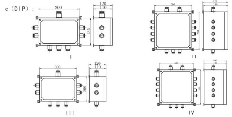6、接線箱進(jìn)線口規(guī)格常規(guī)為英制管螺紋,也可以根據(jù)用戶要求加工成公制螺紋或NPT等螺紋,但須在訂貨時備注。