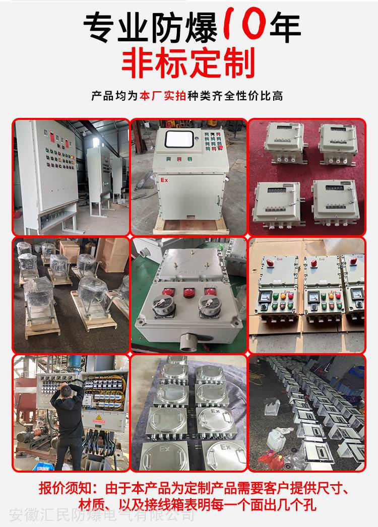 安徽匯民防爆電氣有限公司一直注重人才的培養(yǎng)和質(zhì)量管理體系的控制,公司擁有充滿活力的工程師團隊和技術(shù)熟練的車間工人,采用良好的設(shè)備和工藝,壓鑄、噴涂等關(guān)鍵工藝都實現(xiàn)了自動化和半自動化,有激光切割機、剪板機、焊接機器人、噴房、數(shù)控加工、磨床等設(shè)備。同時檢測中心配備了分布光度計、高低溫試驗箱、濕熱試驗箱等一大批檢測設(shè)備。樹立“防患于未然,防爆于現(xiàn)場”的安全生產(chǎn)理念,不斷提高研發(fā)和質(zhì)量管理水平。公司有防爆配電箱、防爆接線箱、防爆斷路器、防爆開關(guān)等8項產(chǎn)品的3C認(rèn)證證書和防爆配電箱、防爆燈、防爆正壓柜、防爆空調(diào)、防爆風(fēng)機等14項產(chǎn)品的防爆合格證。