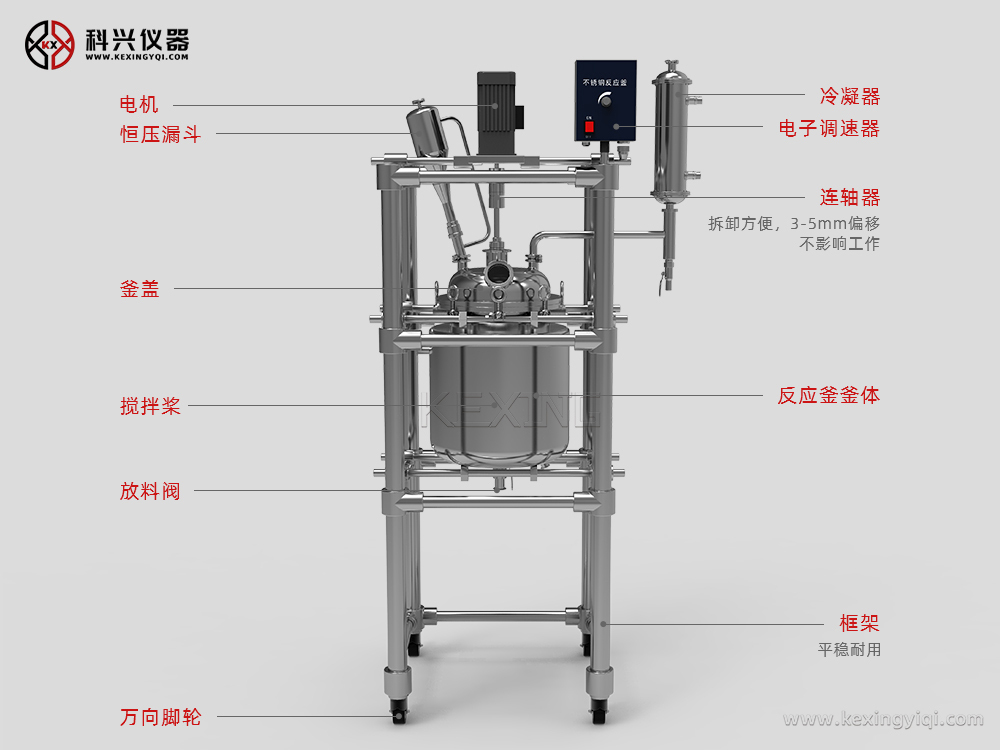 上??婆d儀器生產雙層不銹鋼反應釜主要用于制藥、化工、實驗室等機構的有機合成實驗室用中式設備,用于有機物合成實驗中,是生化制藥中的主要設備之一。